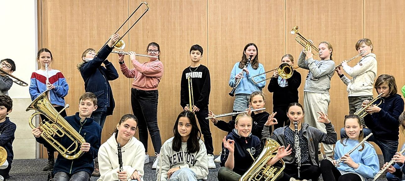 In der Bläserklasse lernen alle Schüler:Innen, ein Blasinstrument zu spielen! Zur Auswahl stehen zu Beginn: Querflöte, Klarinette, Trompete, Posaune und Euphonium. Sie werden vor der Wahl im Instrumentenkarussell gründlich ausprobiert. Im weiteren Verlauf der Bläserklasse wird das Instrumentarium z.B. durch Saxophon, Tuba, Bandinstrumente und Schlagwerk erweitert.