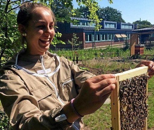 Seitdem haben die Schüler und Schülerinnen die Möglichkeit das Imkern zu erlernen, etwas über die Sensibilität bestäubender Insekten zu erfahren und mit Freude den eigenen Schulhonig zu ernten.