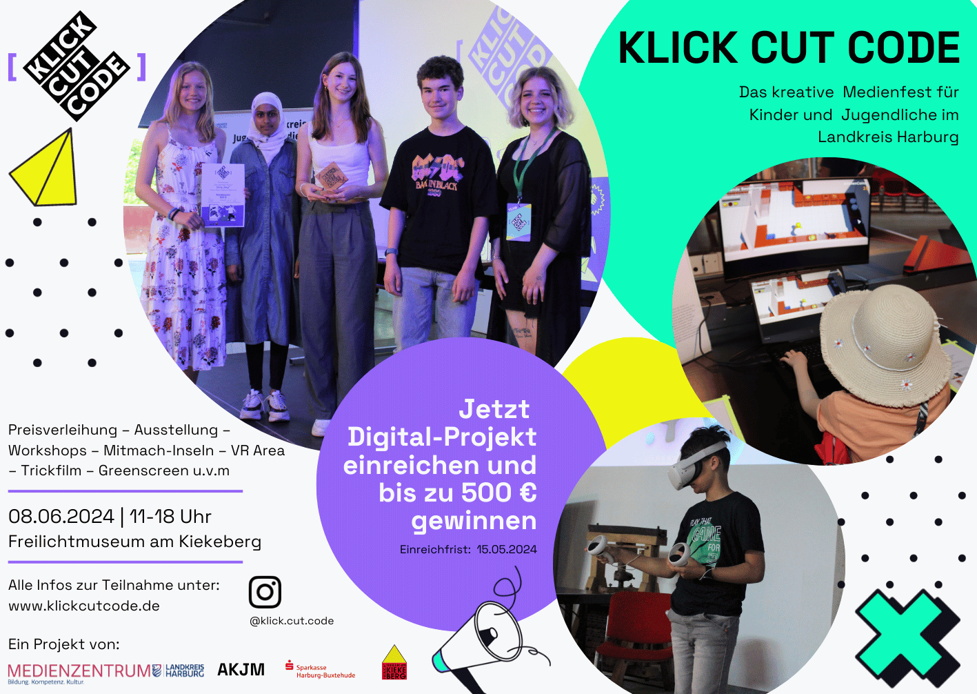habt ihr schon von KLICK CUT CODE gehört? Es ist eure Chance, eure kreativen Medienprojekte zu präsentieren und bis zu 500 € pro Projekt zu gewinnen!